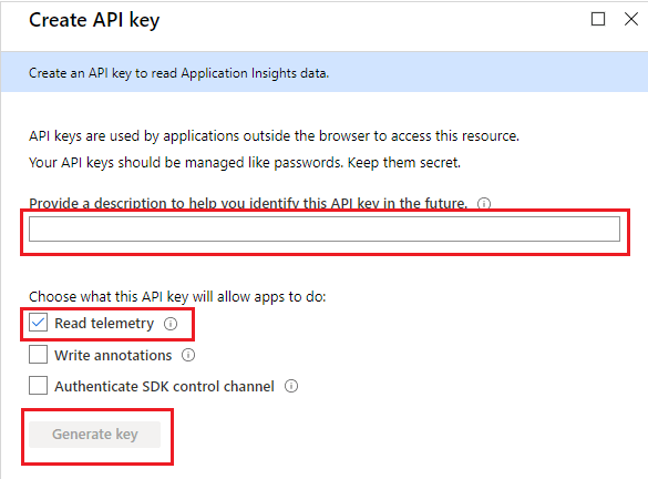 - Application ID: Application ID of the Azure Application Insights API Access.