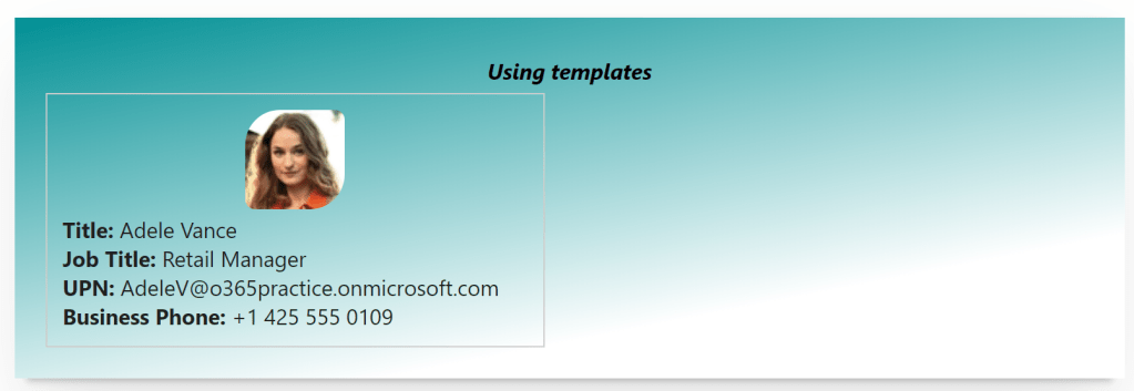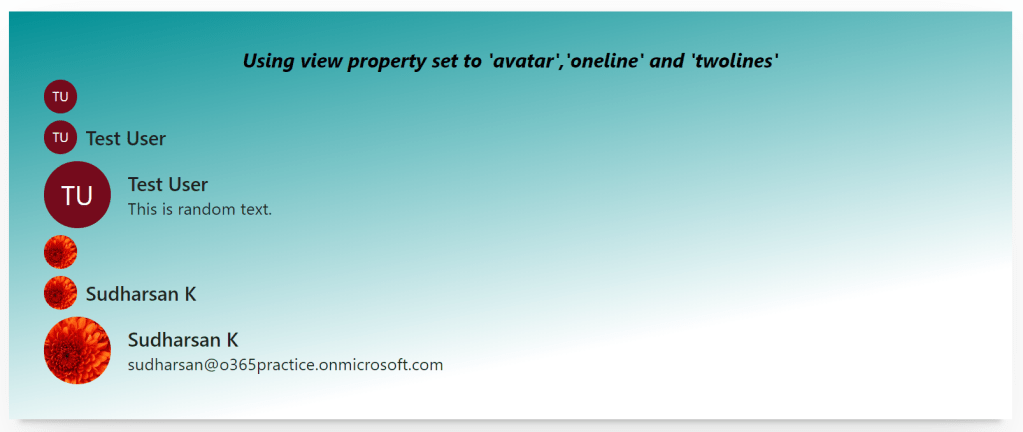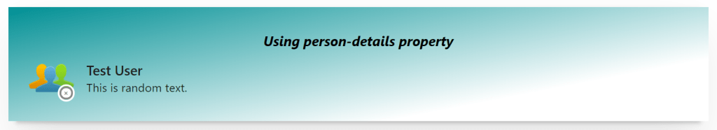 Using this property, we can show a separate card for the person with the email, phone number and other information. The ‘Person-Card’ is a separate component which has many properties and customization options which will be covered in the upcoming posts