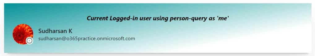 <div className={styles.sectionTitle}>Current Logged-in user using person-query as 'me' and using person-card</div>