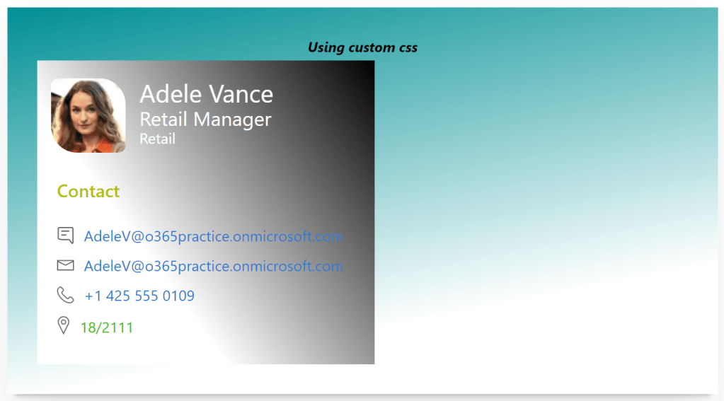 We can use this property to display the custom user info, using this property won’t trigger the graph call. Copy-paste the below code to declare a personDetail variable different properties. The key should be the same but the value can be any.