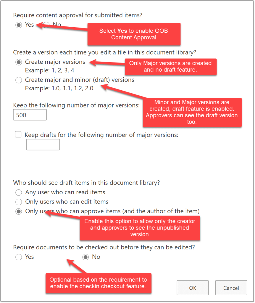 Hi, in this post let us see how we can enable the content approval for document library and also let us see some configuration settings and options. Before that lets see why we need to have a content approval and whether its really needed for an organization or not.