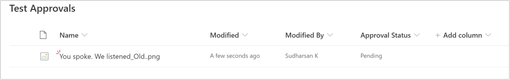 Once the above settings are enabled, you should be able to see the Approval Status column added to the default view of the library.