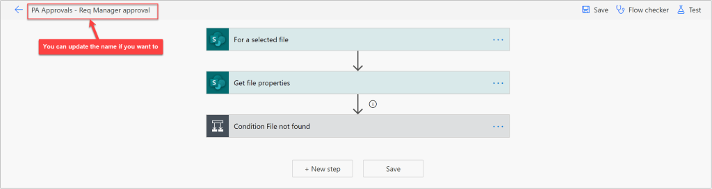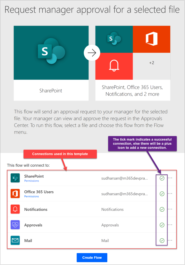 ‘Request manager approval for a selected file‘ is the predefined template that users can leverage to get the manager approval for the files in a document library. This flow is used to get the approval from the user’s manager who triggered the approval process for the selected file.