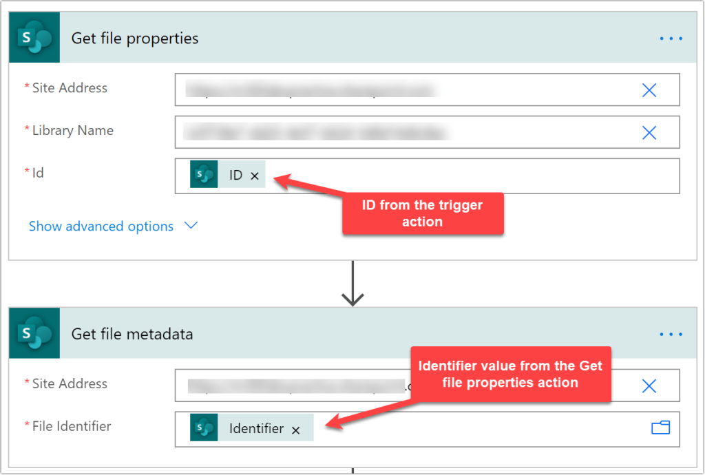 - Used Get File Properties & Get file metadata to get some information about the page that you had submitted for approval. There are couple of difference between the two actions. The properties action is used to get the values of the field stored in the library. The metadata action is used to get the file information like size, etag etc which we will use it in the below actions.
