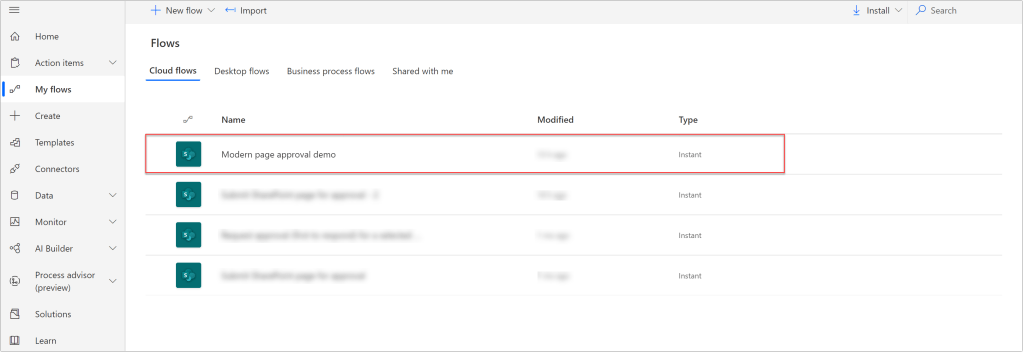Now the flow is created. Navigate to the Power Automate site and go to My flows from the left nav. You should see the flow which is created from the above steps along with other flows if any.