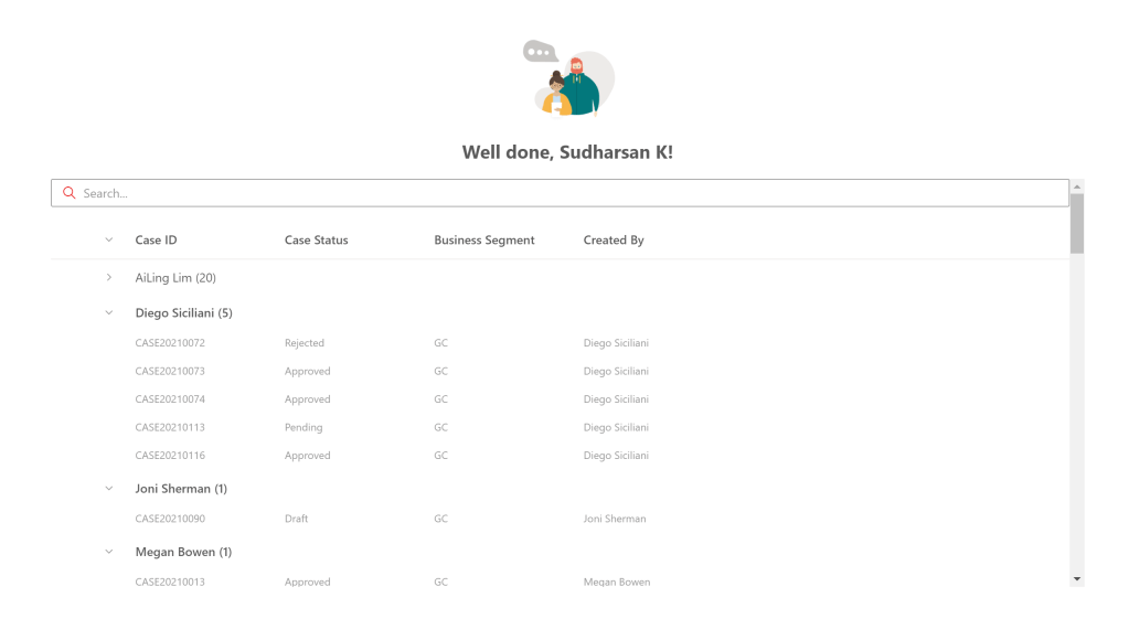 .select('CaseID', 'CaseStatus', 'BizSegment', 'Author/Title')