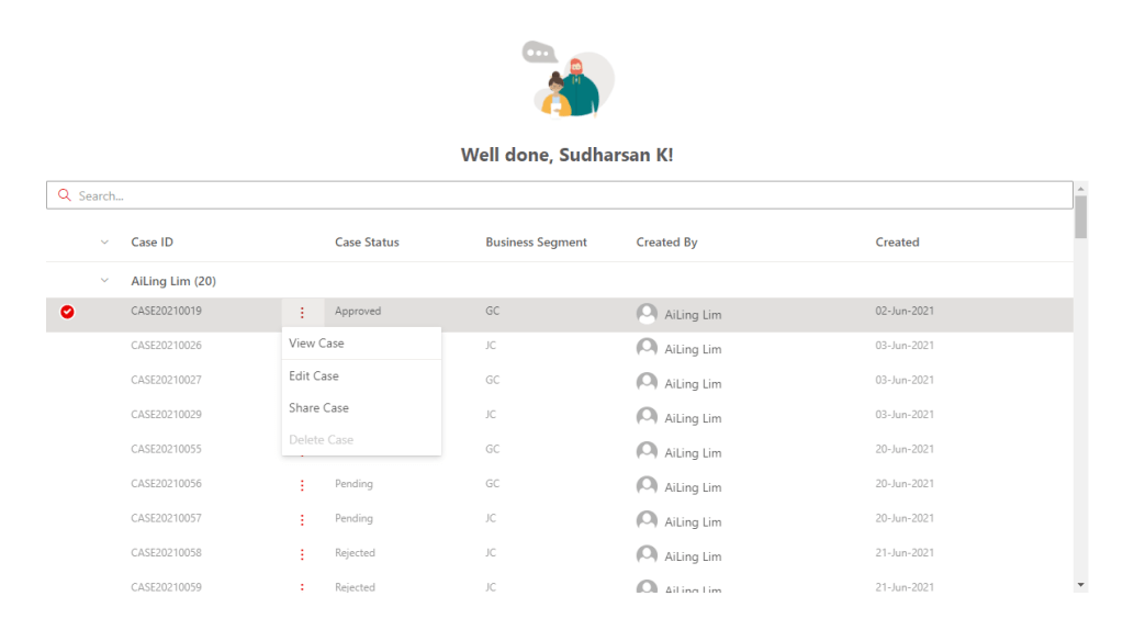 - Added a new field after the CaseID field to render the ContextMenu. A custom control named ListViewContextMenu is rendered and we will see the control in detail.