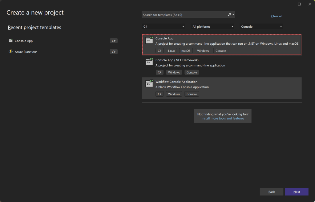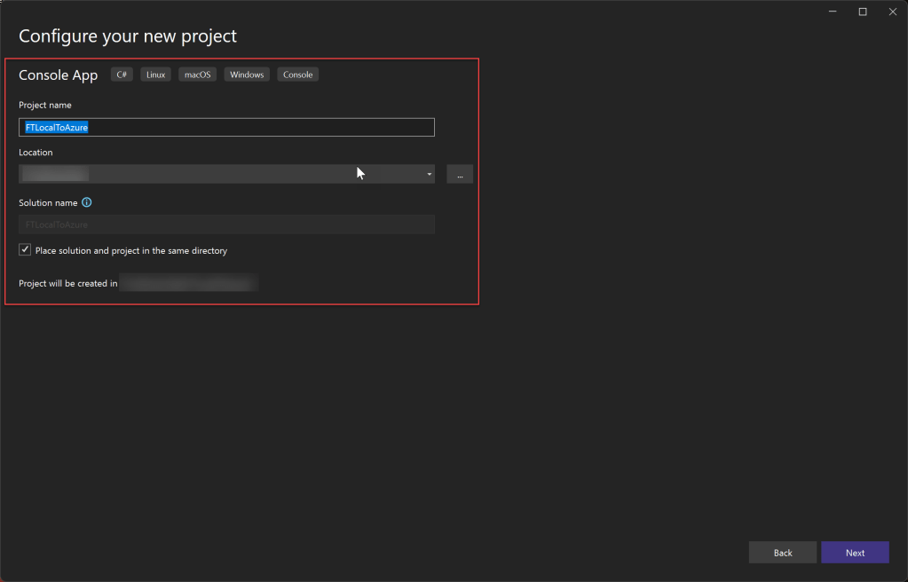 Create a Console App project using Visual Studio 2019 or 2022 and follow the steps as shown in the below screenshots