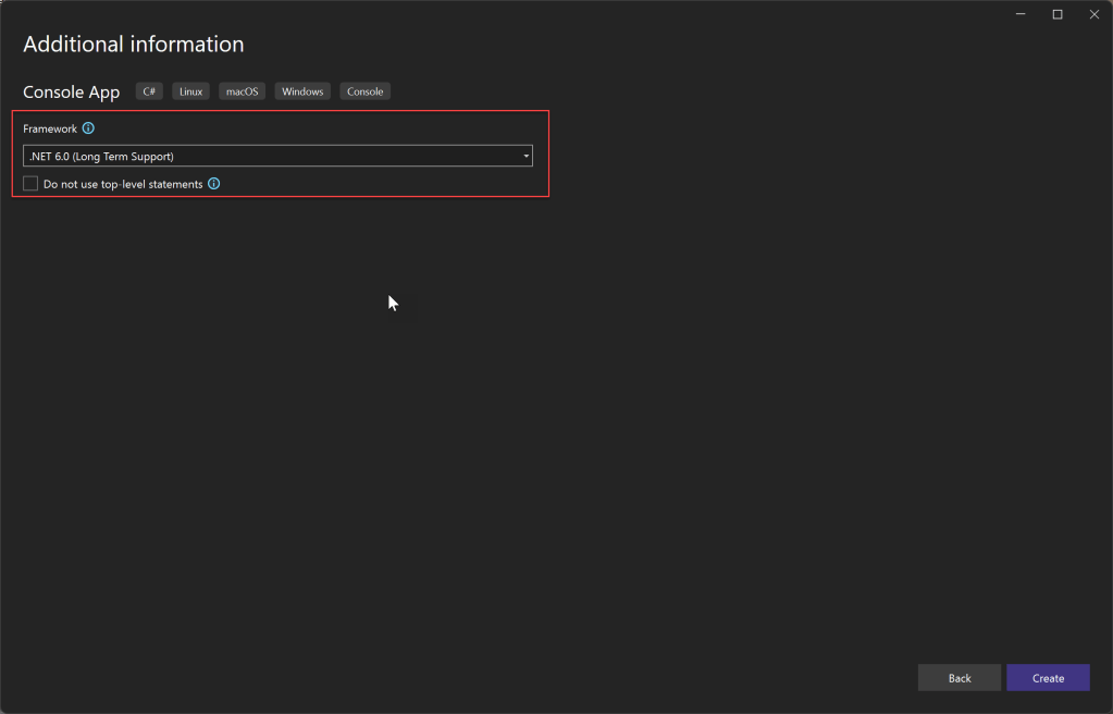 Choose the .Net framework. Here I chose .Net 6.0