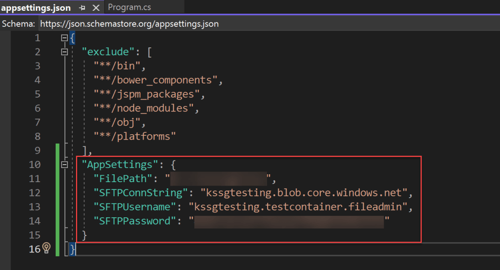 Create a AppSettings section inside the appsettings.json file and update the below mentioned variables.
