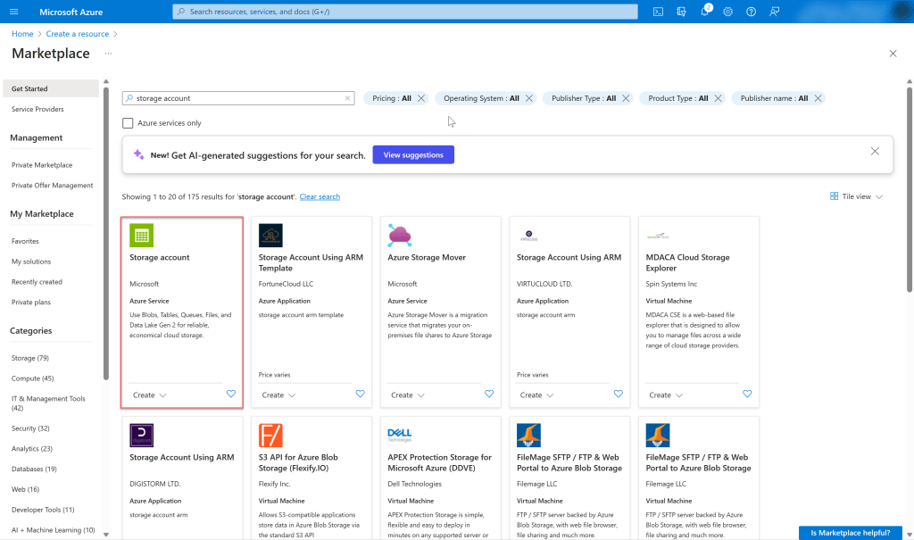 Creation of Azure Storage Account