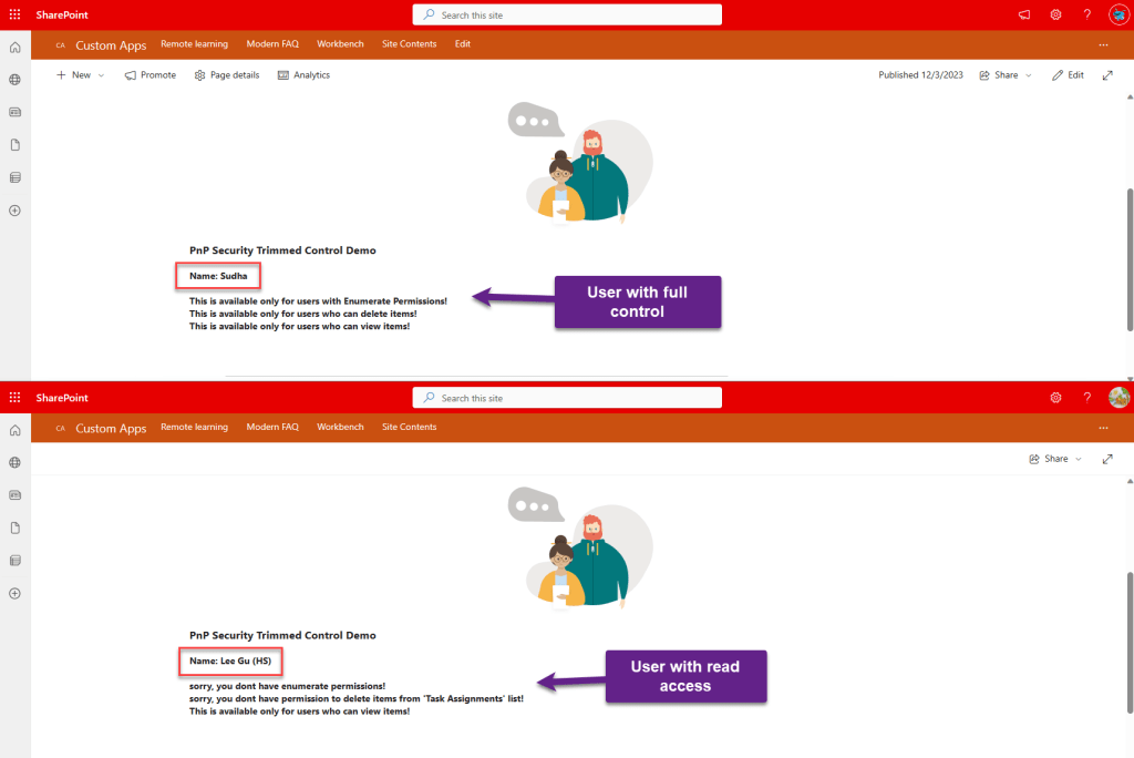 For instance, if a specific document or folder within a SharePoint library is restricted to certain user groups, the PnP Security Trimmed Control ensures that users who lack the necessary permissions won’t even be aware of its existence. This approach minimizes the risk of accidental exposure of sensitive data.