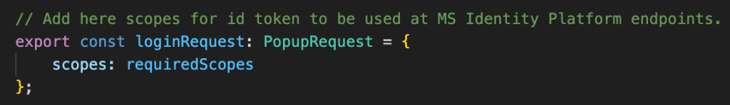 Also, if you noticed we are passing the loginRequest param to the loginPopup method which has the required scopes that we will use for the application.