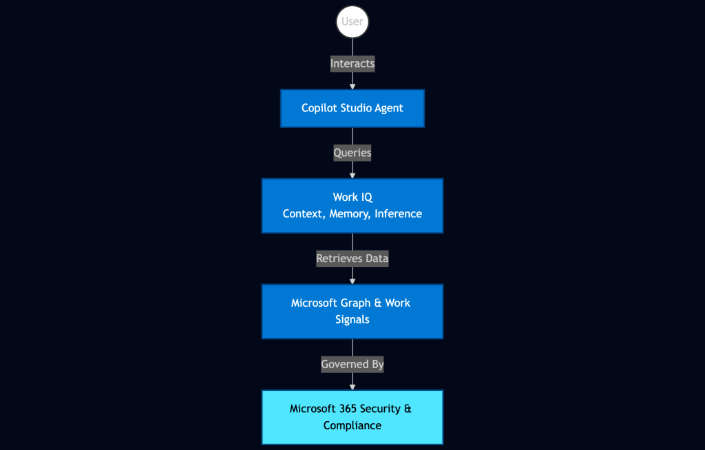 Work IQ acts as the shared intelligence layer for all Copilot Studio agents.